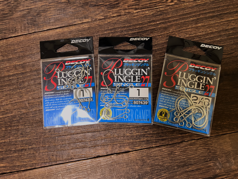 ↑このカツイチ,デコイのフックは2個セットのほうがかなり安かったりします。(時期にもよります)