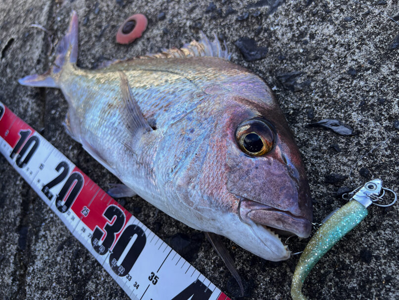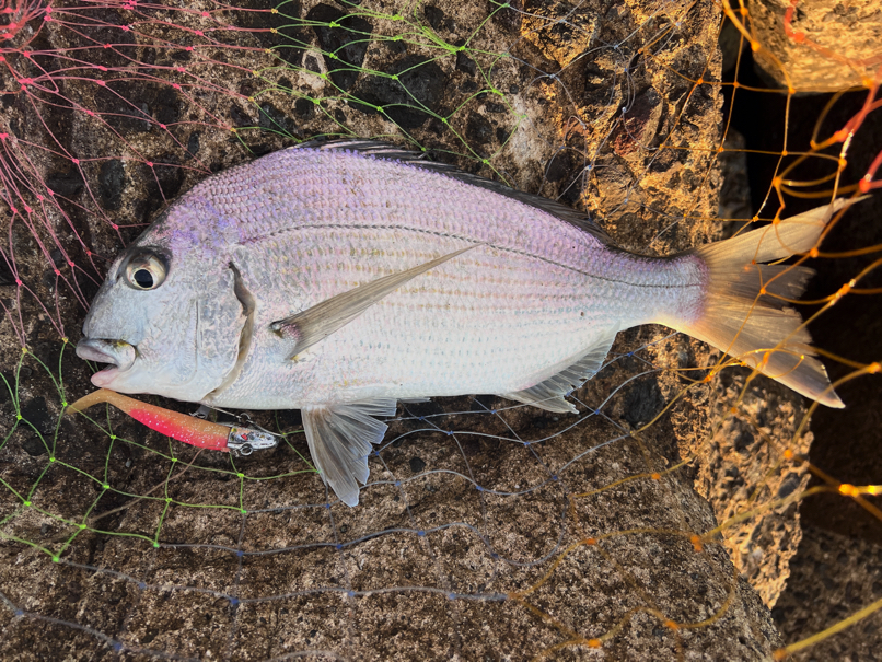 ちなみに余談ですが,マダイやヘダイなどの鯛系統は,写真以外にも釣っていますが,なぜかいつも20gかそれ以下グラムのヘッドにヒットします。28gなどは全然食ってきません。